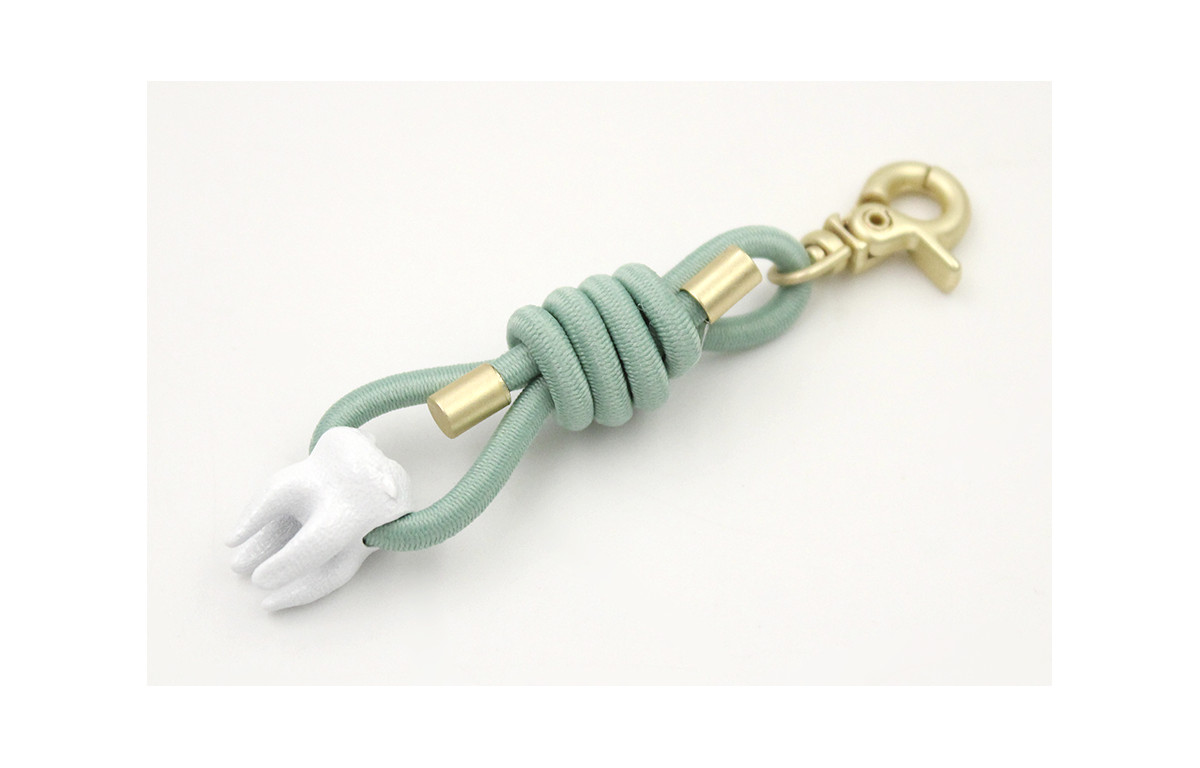Llavero cordón goma verde menta con muela blanca y