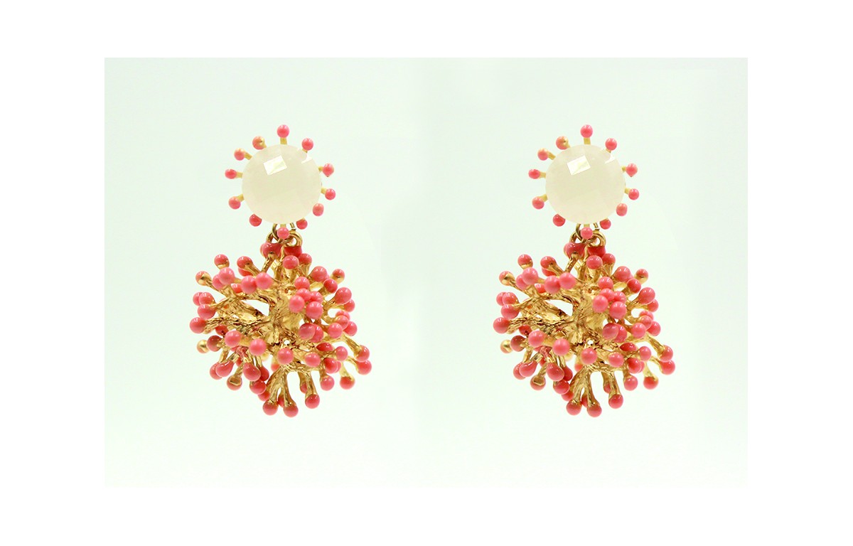 Pendientes corales puntas esmaltadas y cristal blanco opal