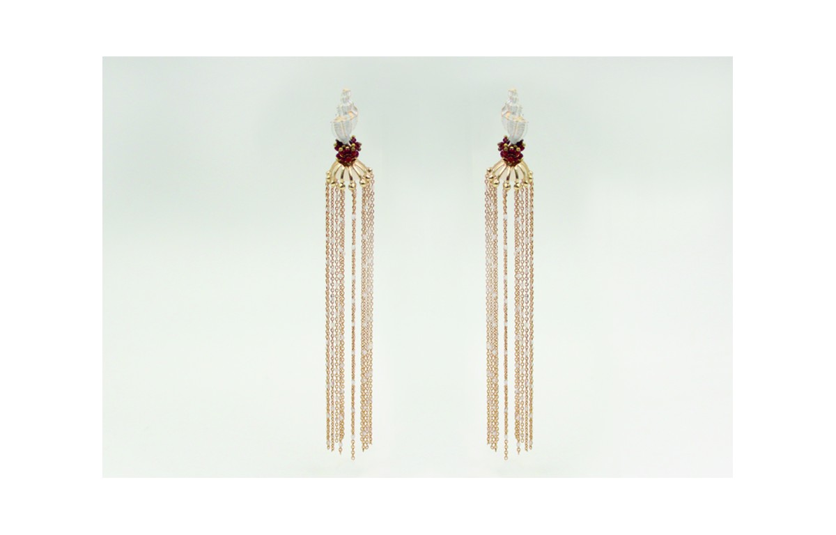 Pendientes perno caracola 24x10mm con cadena oro m