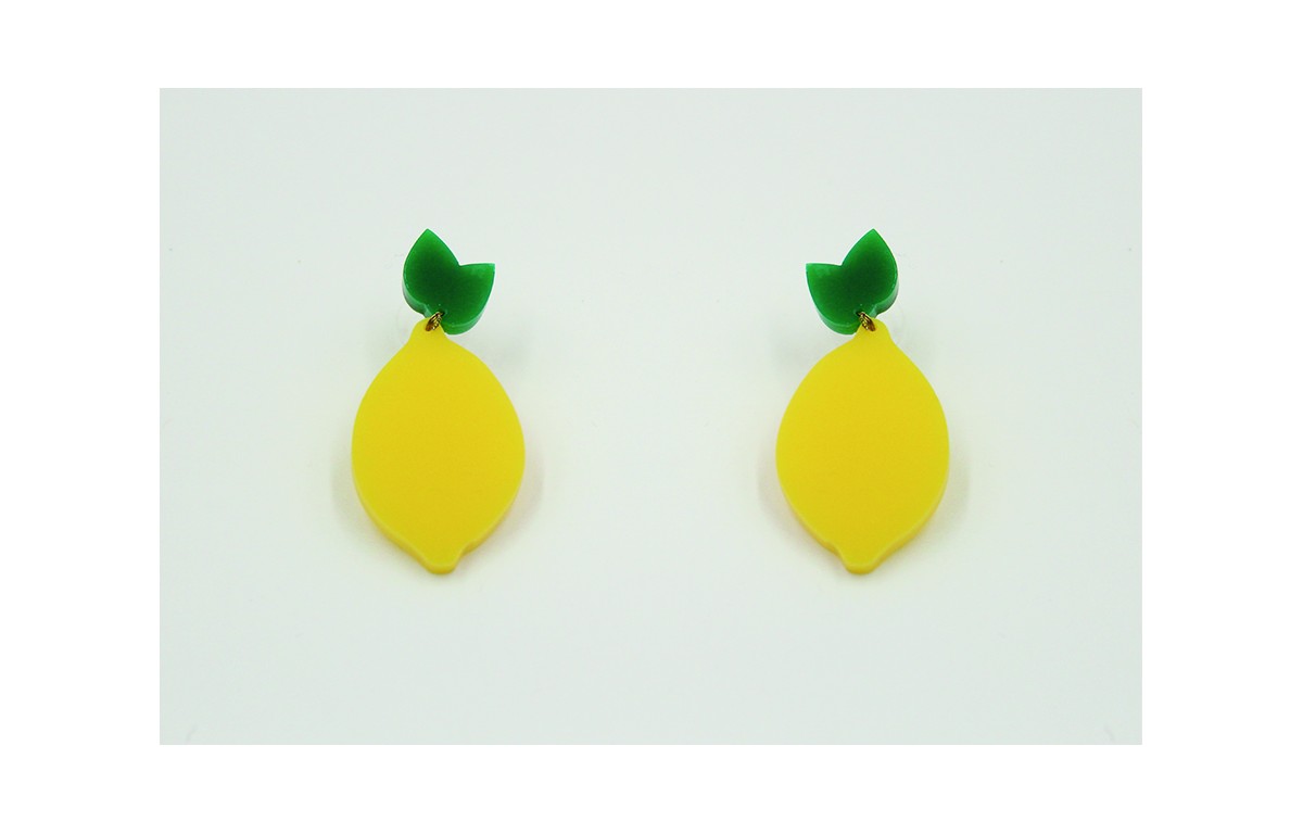 Pendientes con forma de limón en metacrilato amarillo. Largo del pendiente 4cm