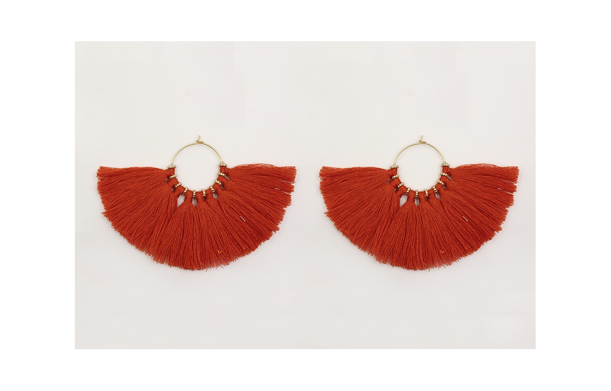Pendientes de aro con pompones naranjas y rueditas