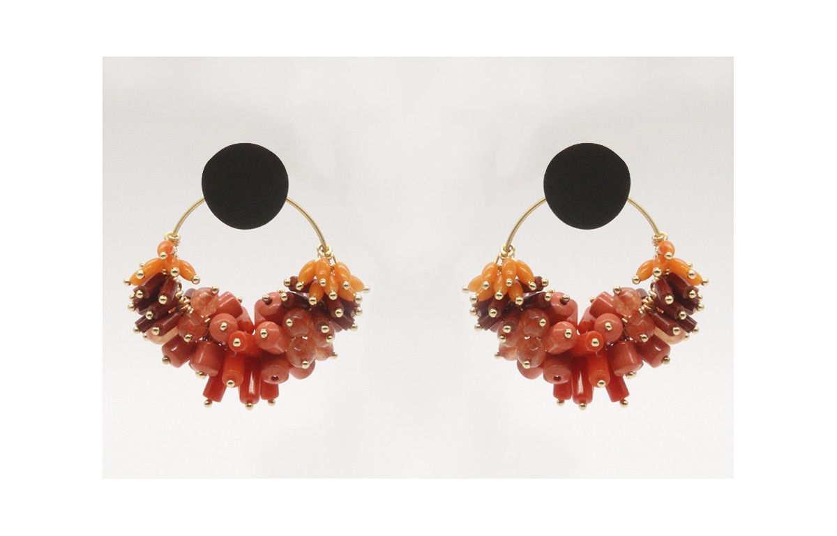 Pendientes aro con corales y perno en color negro