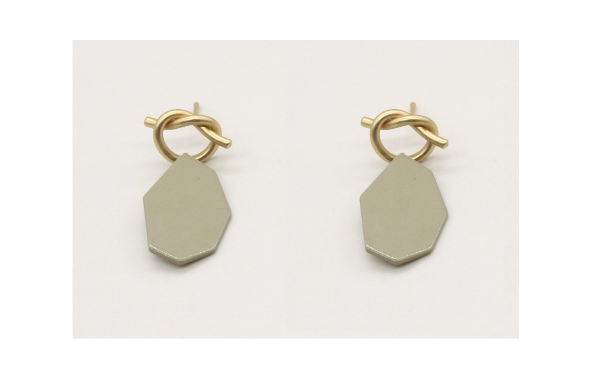 Pendientes perno nudo en oro mate y pieza esmaltada en color visón. Largo 3cm.