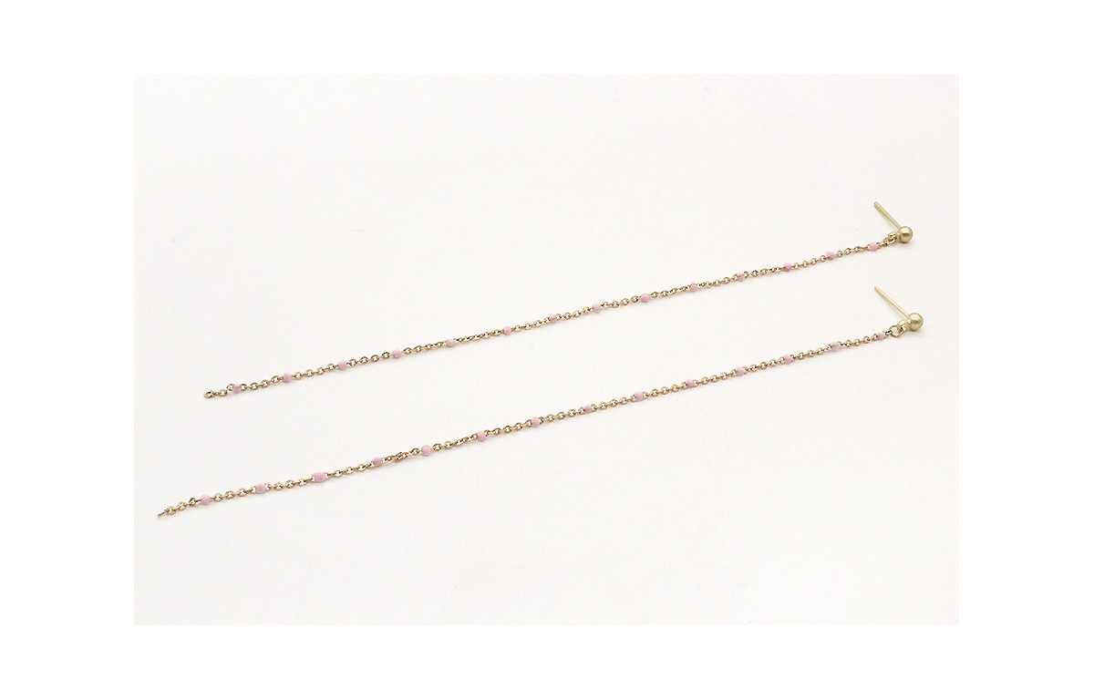 Pendientes largos cadena eslabón con bolita esmaltada rosa y perno bolita