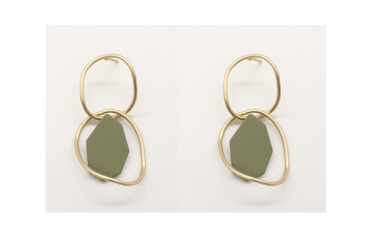 Pendientes doble aro en oro mate con pieza esmaltada verde oscuro.