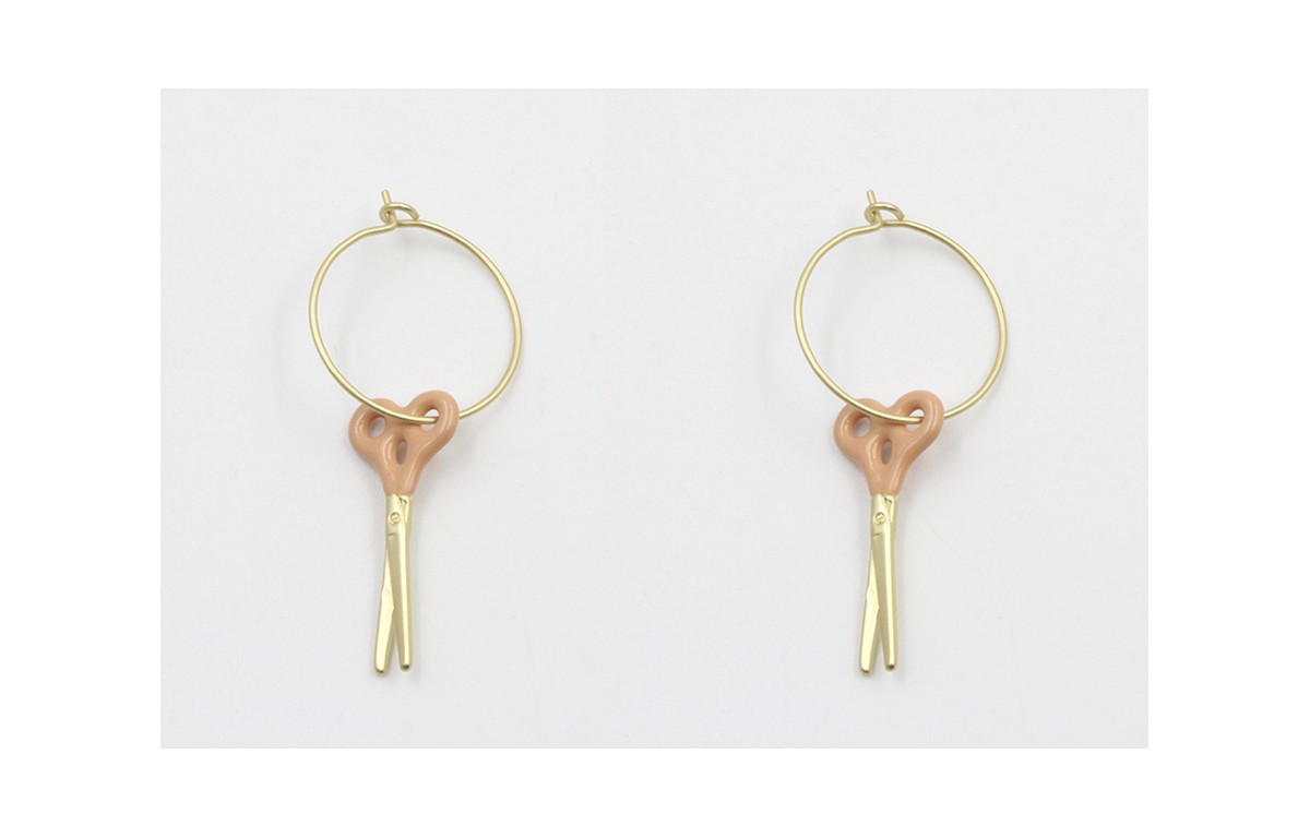 Pendientes aro oro mate con tijeras esmaltadas ros