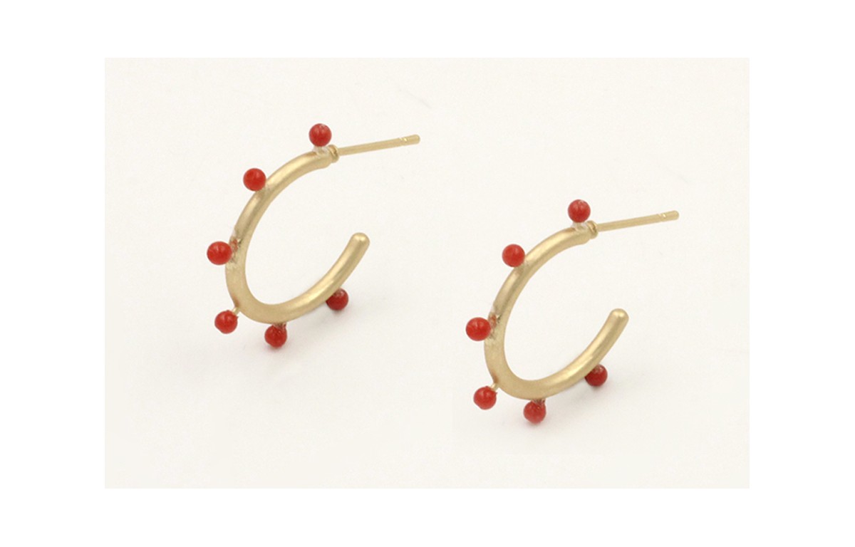 Pendientes aro con puas dorado mate con corales.