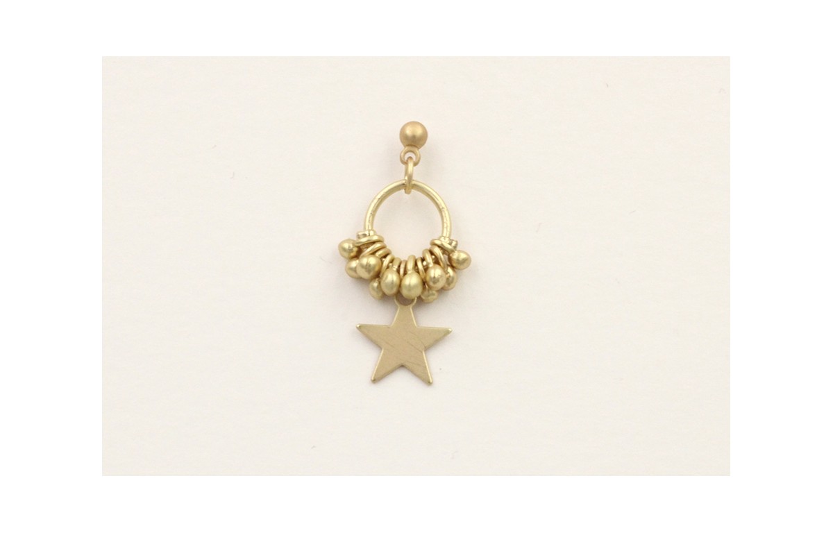 Single earrings con colgante estrella y bolitas en dorado mate. Largo 2cm.