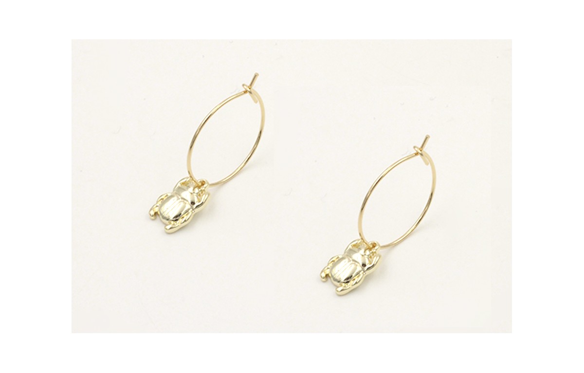 Pendientes aro dorado con escarabajo plano colgand
