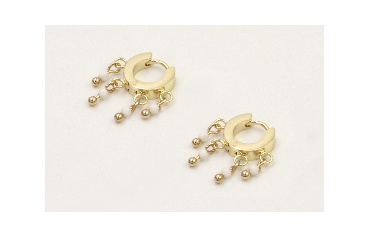 Pendientes acero inoxidable cierre aro con 3 anillas y facetadas blancas colgando. Largo 2cm.