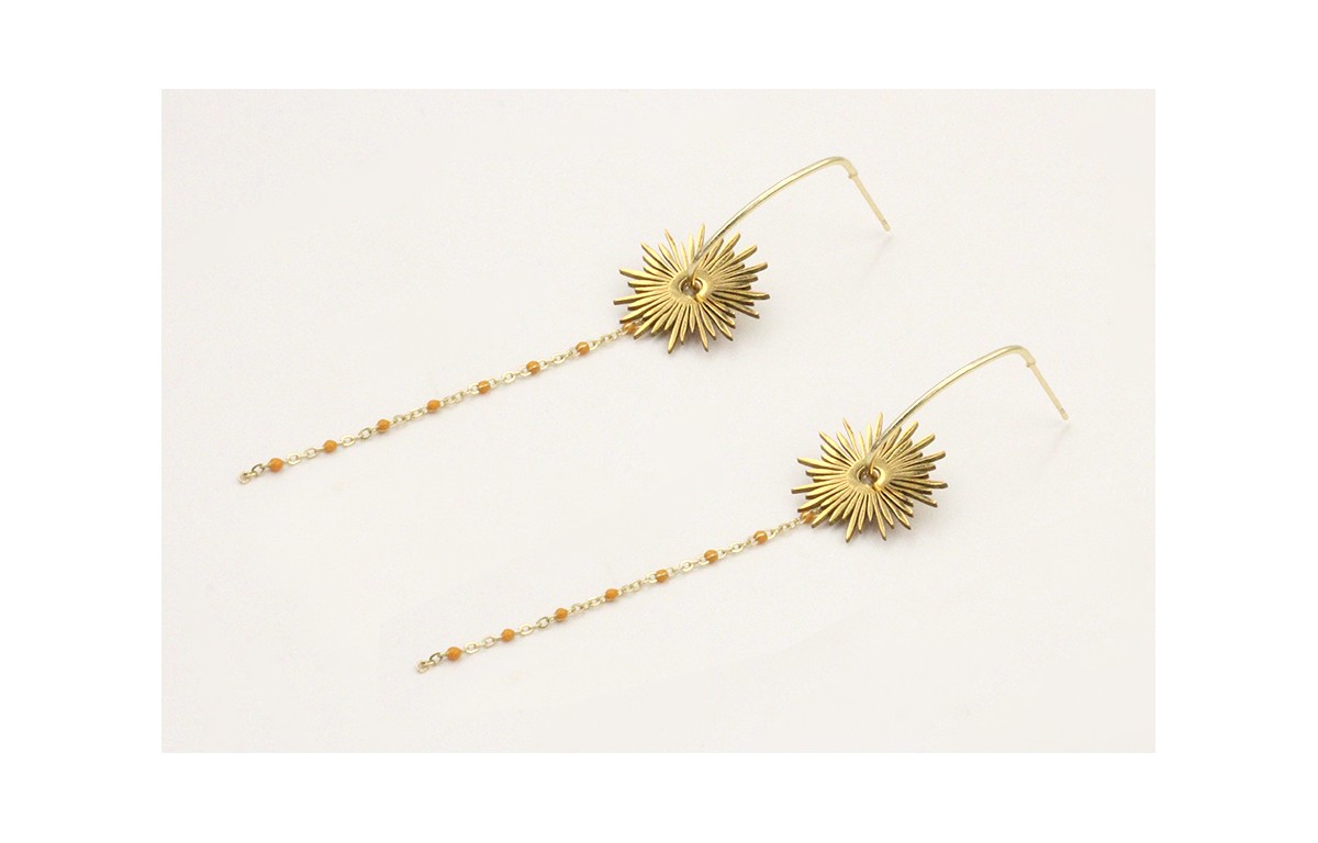 Pendientes acero inoxidable anzuelo con estrella redonda y cadena micro esmalte mostaza. Largo 7cm.