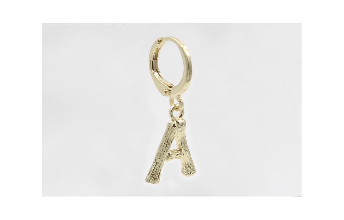 Singel earring cierre aro dorado, colgante letra A.