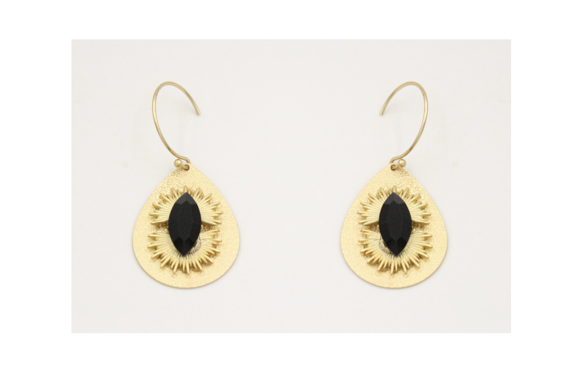 Pendinetes lagrimas oro mate con brillo cristal negro y sol. Largo 5cm.