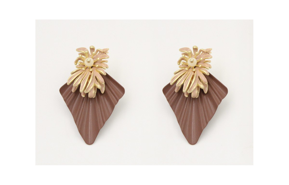 Pendientes perno nenufar visón con triangulo esmaltado marrón. Largo 4cm.