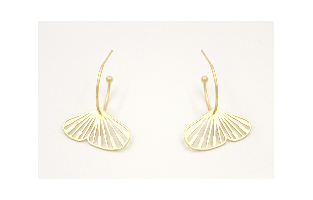 Pendientes aro con bolita oro mate y alas de mariposa. Largo