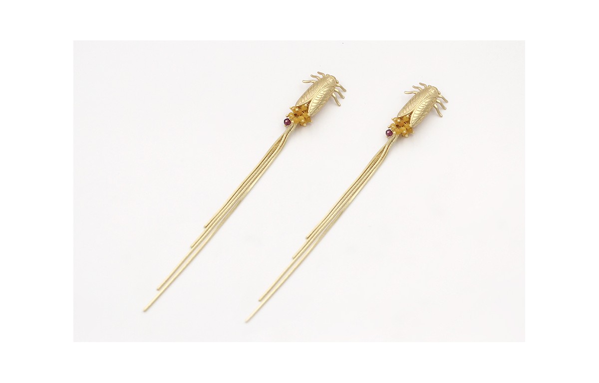 Pendientes perno cigarra oro mate con burruño boli