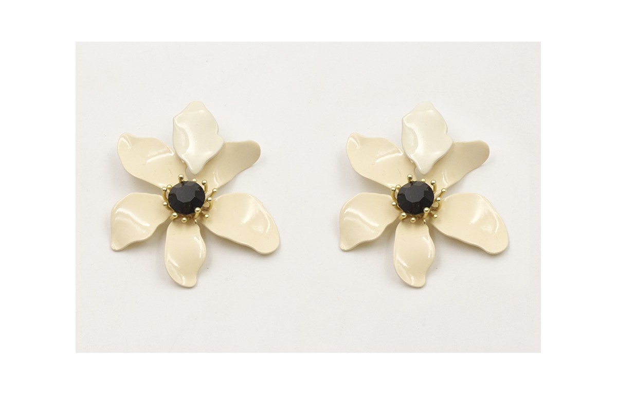 Pendiente flor esmlatada beige con brillo negro. L