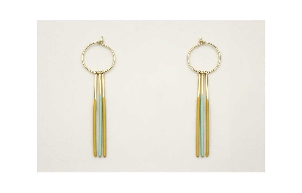 Pendientes acero inoxidable con aro pequeño y barritas esmaltadas en turquesa y pistacho. Largo 5cm.