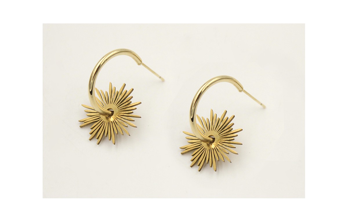 Pendinetes acero inoxidable perno semi aro con bola y colgante estrella. Largo 3cm.