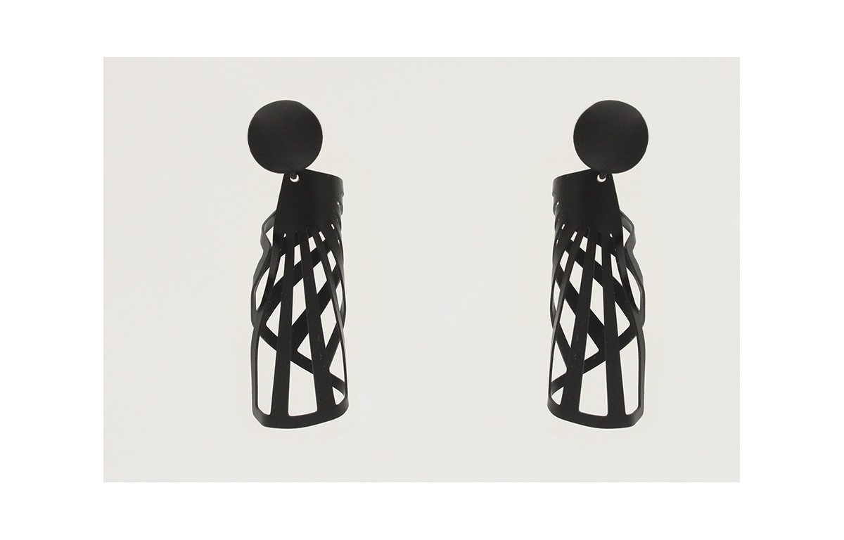 Pendientes perno esmaltado negro con lámina abanico retorcido negro mate. Largo 5cm.