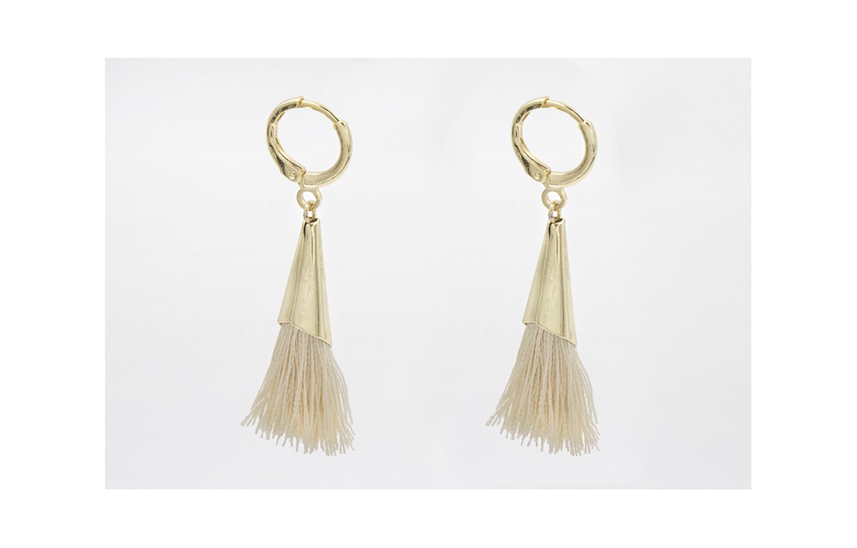 Pendientes cierre dorado con fleco crema con capuchón dorado. Largo 5cm.