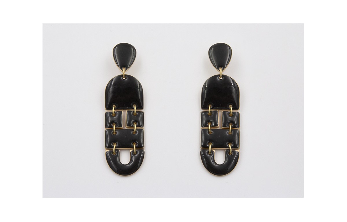 Pendientes perno gota, semi ovalo, cuadrado, rectangulo,herradura todo esmaltado negro. Largo 5cm.