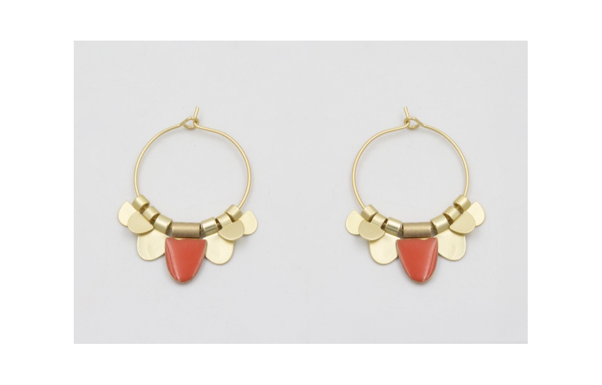 Pendientes aro mediano dorado mate dagas rosa coral y doradas mates en distintos tamaños. Largo 3,5cm.