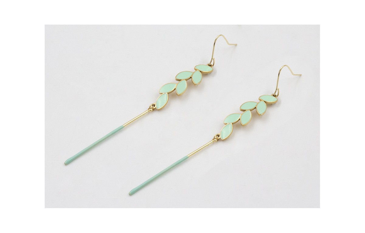 Pendientes acero inoxidable gancho rama pétalos esmlatada turquesa y listón oro y turquesa.