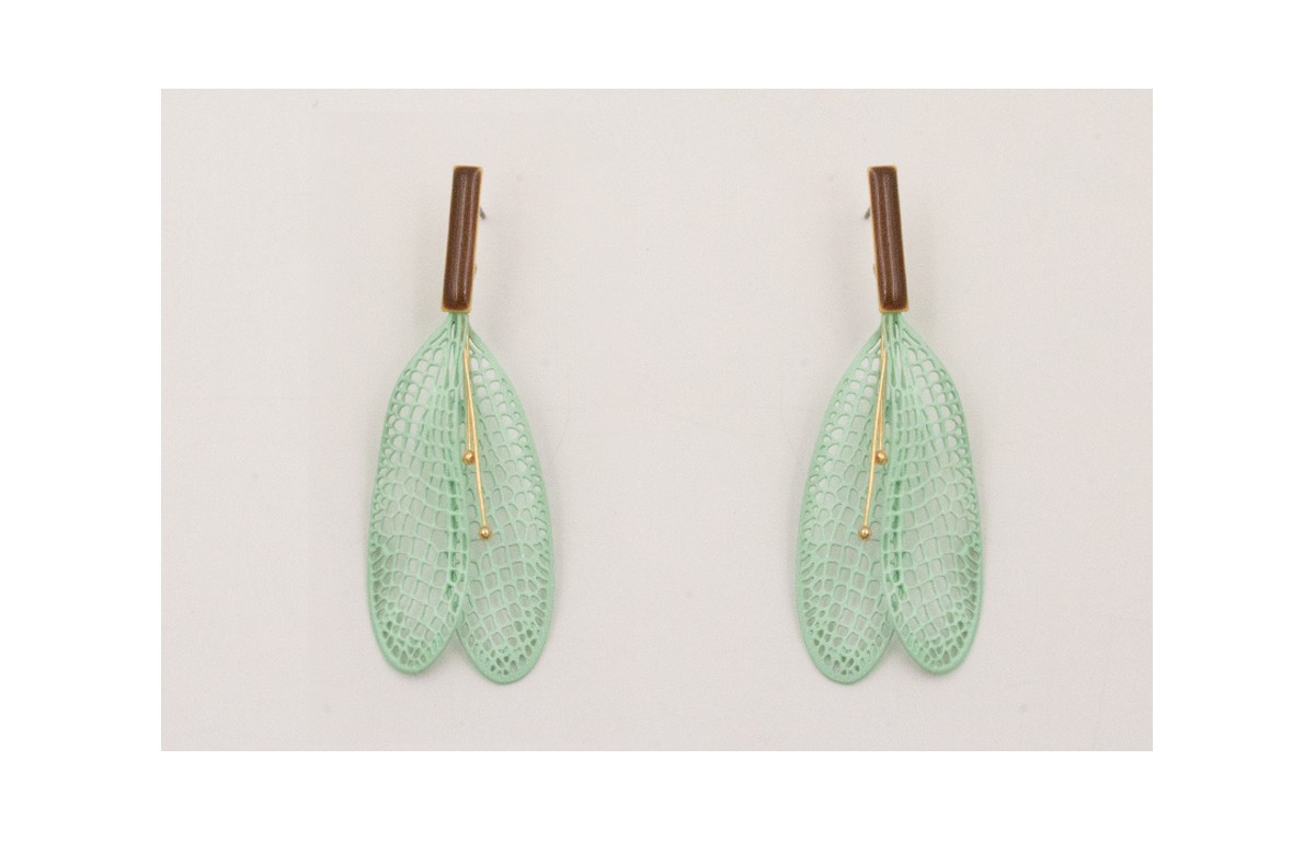 Pendiente listón esmalte marrón colgantes alas libélulas esmalte turquesa.