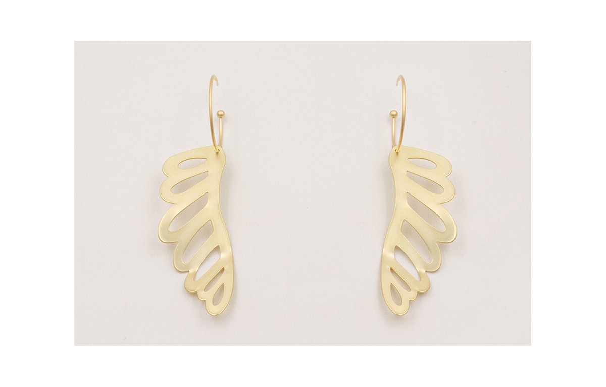 Pendientes aro bolita con ala dorada mate.