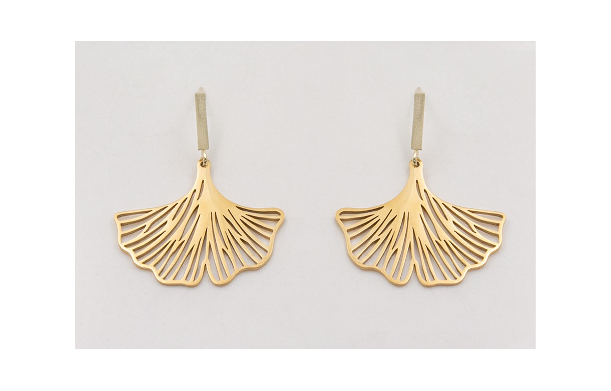 Pendientes ACERO de perno de liston con hoja de gingko grande