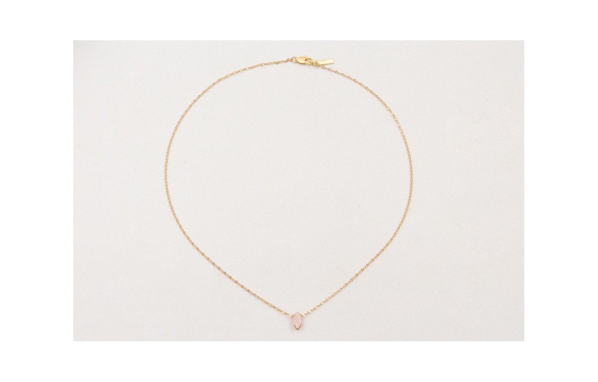 Solitario cadena micro ovalo dorado mate con colgante cabujón ovalado cristal rosa opal.