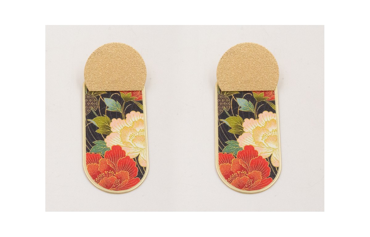 Pendientes perno semi disco satinado dorado mate colgante pieza flores rosas,blancas y negras.