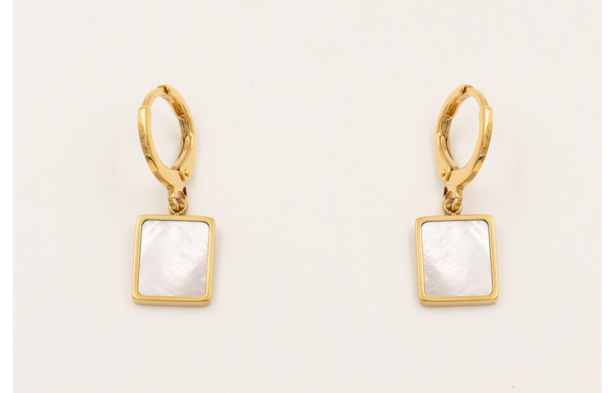 Pendientes cierre aro baño ORO18K-3 micras, colgante de acero inoxidable con nacar.