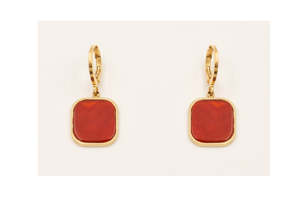 Pendientes cierre aro baño ORO18K-3 micras, colgante de acero inoxidable piedra granate.