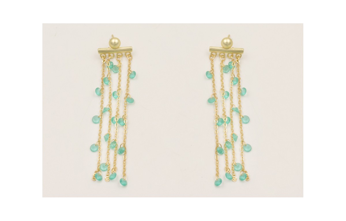 Pendientes 4 tiras cadena cristales azules.