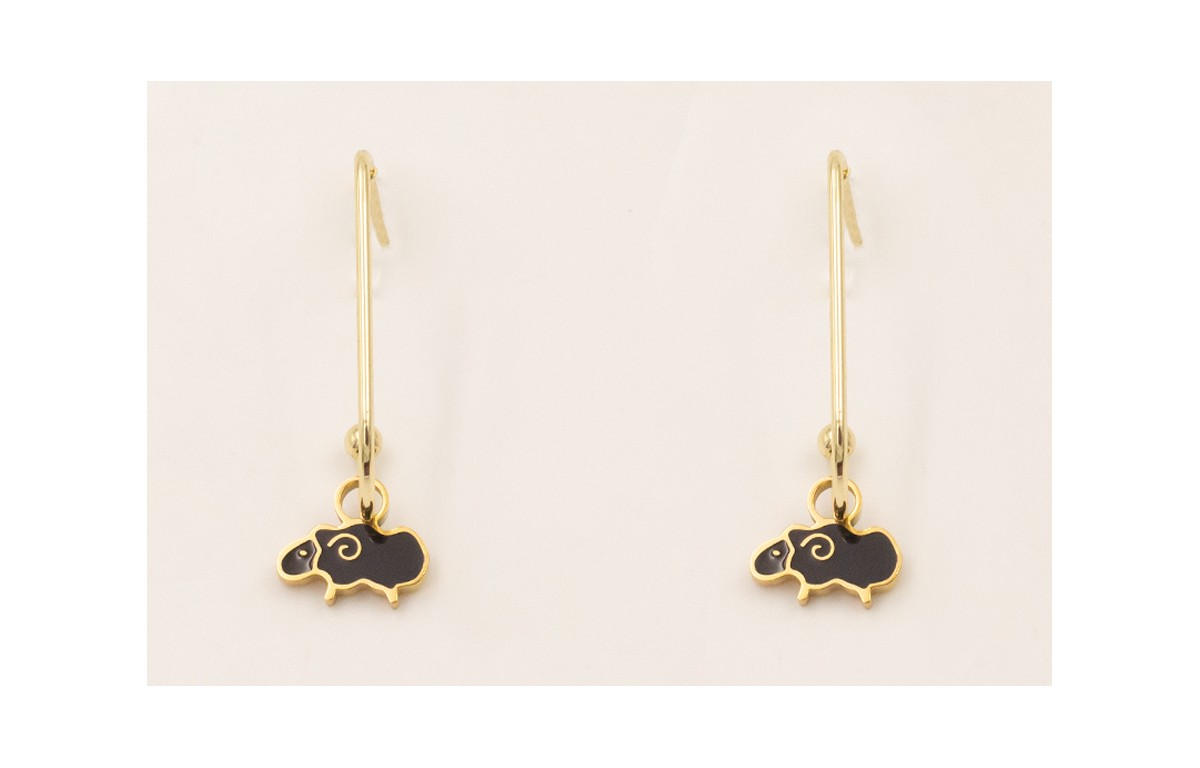 Pendientes ACERO INOXIDABLE perno anzuelo con colgante oveja esmalte negra.