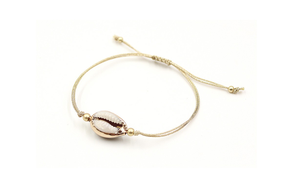 Pulsera hilo macrame dorado con concha esmaltada b