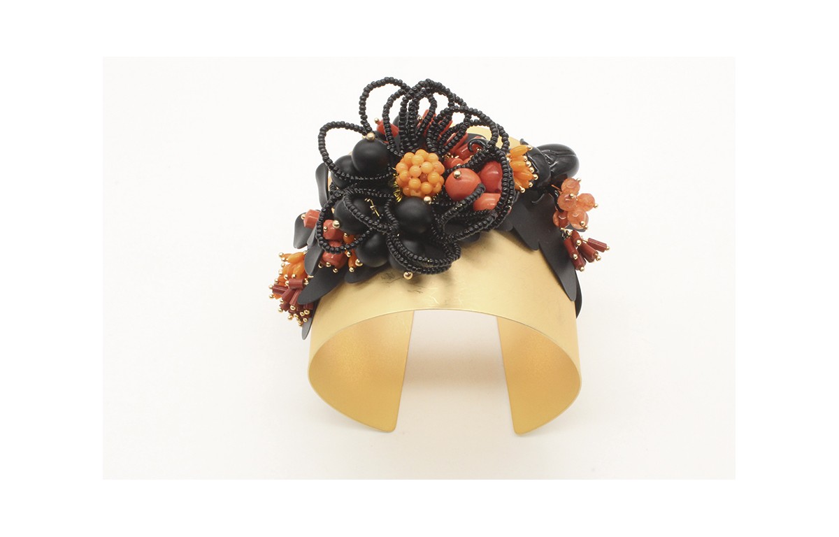 Brazalete con flores negras mates y burruños de co