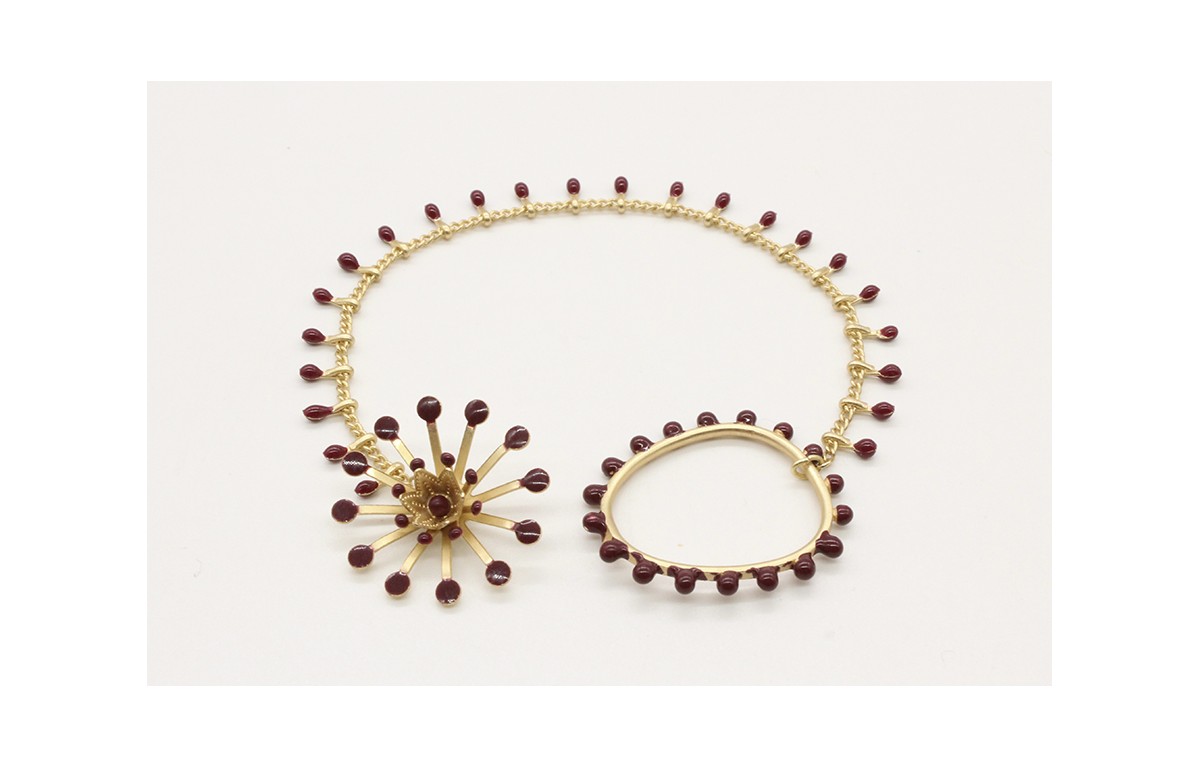 Pulsera de cadena de cerillas esmaltadas en grante y casquillas esmatadas en granate. Largo 17cm.
