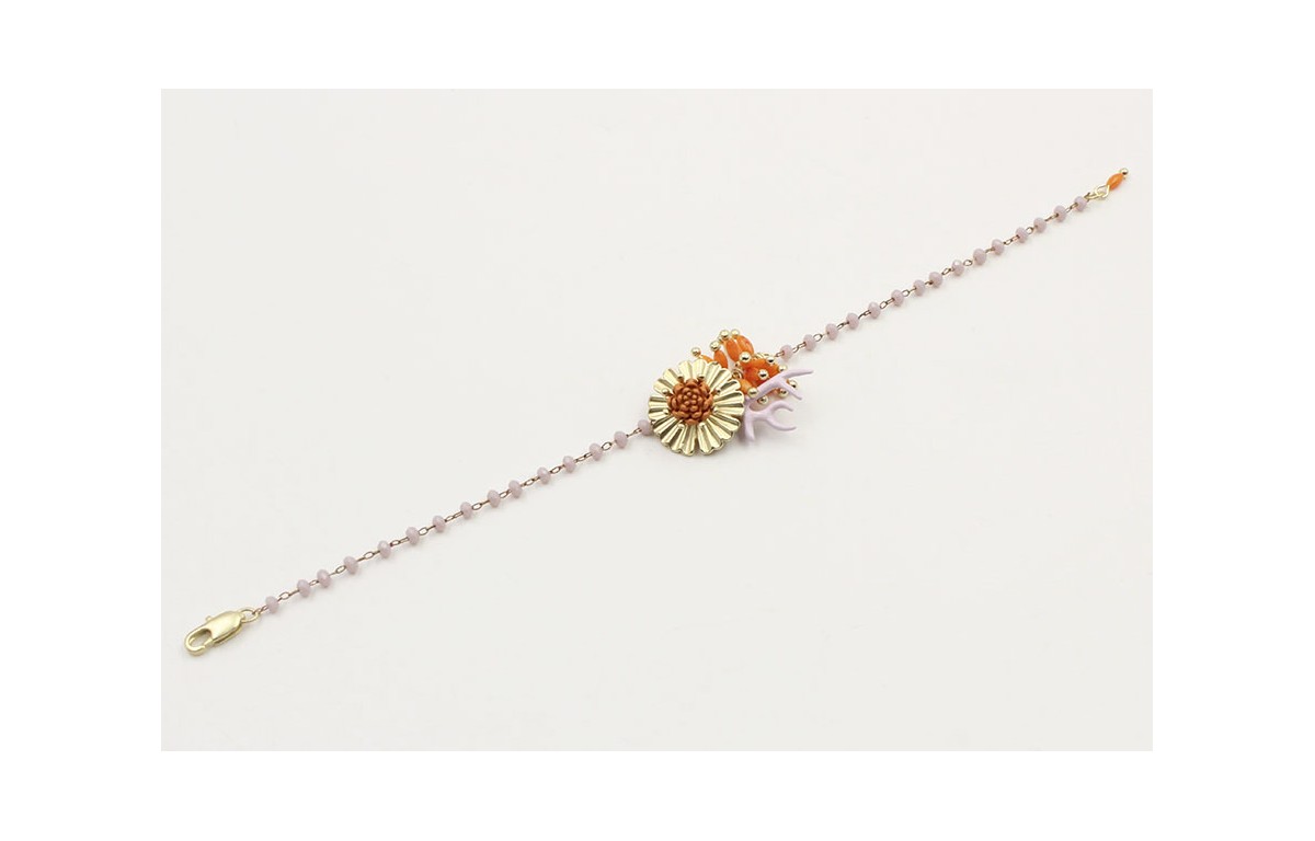 Pulsera cadena facetadas lilas, flor oro mate, ram