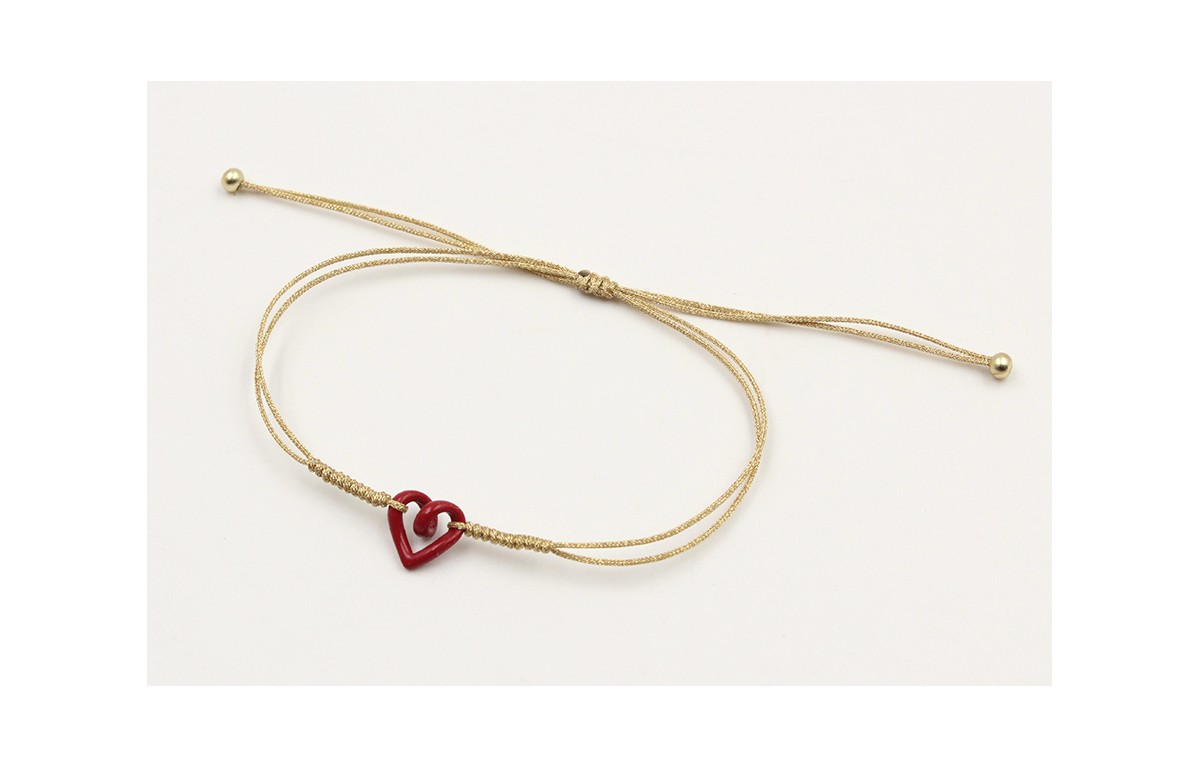 Pulsera nudo serpiente dorado con corazón hueco rojo. Es regulable.