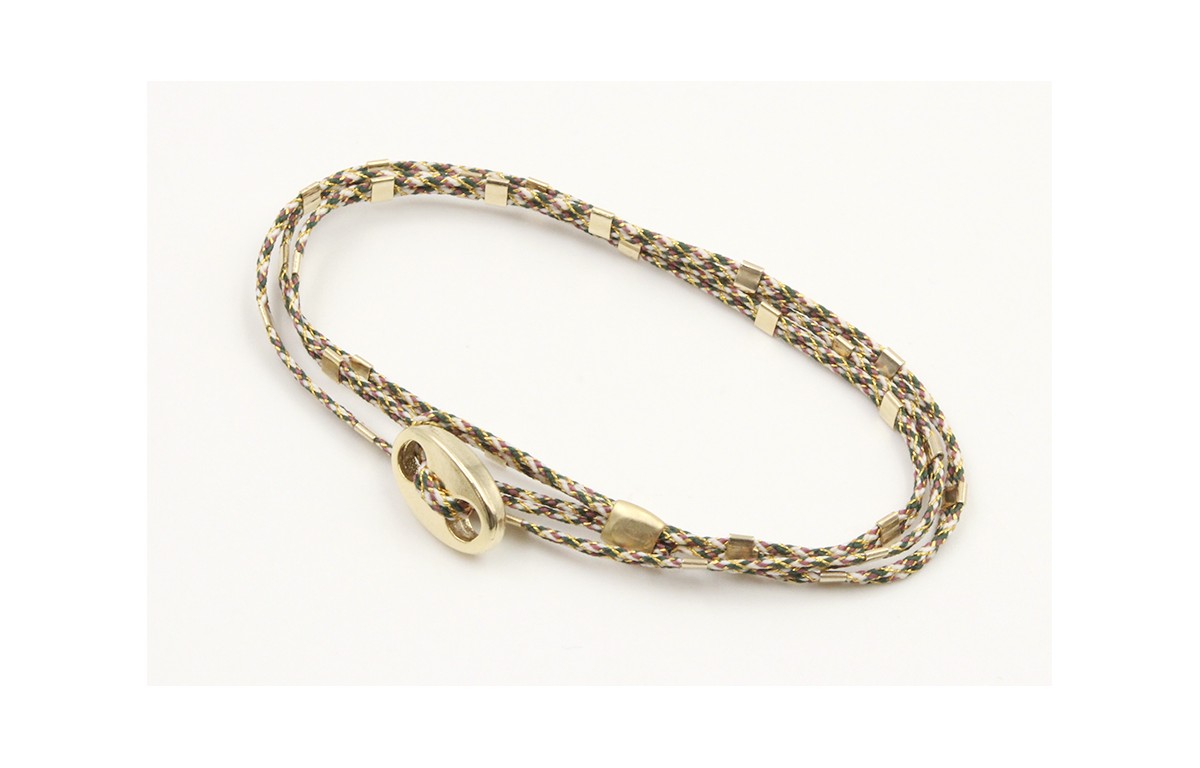 Pulseras micro driza colores marrón,rosa y oro con tubiros dorados y cierre calabrote.