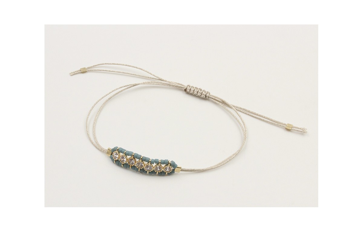 Pulsera hilo macrame plateado con brillos cristal