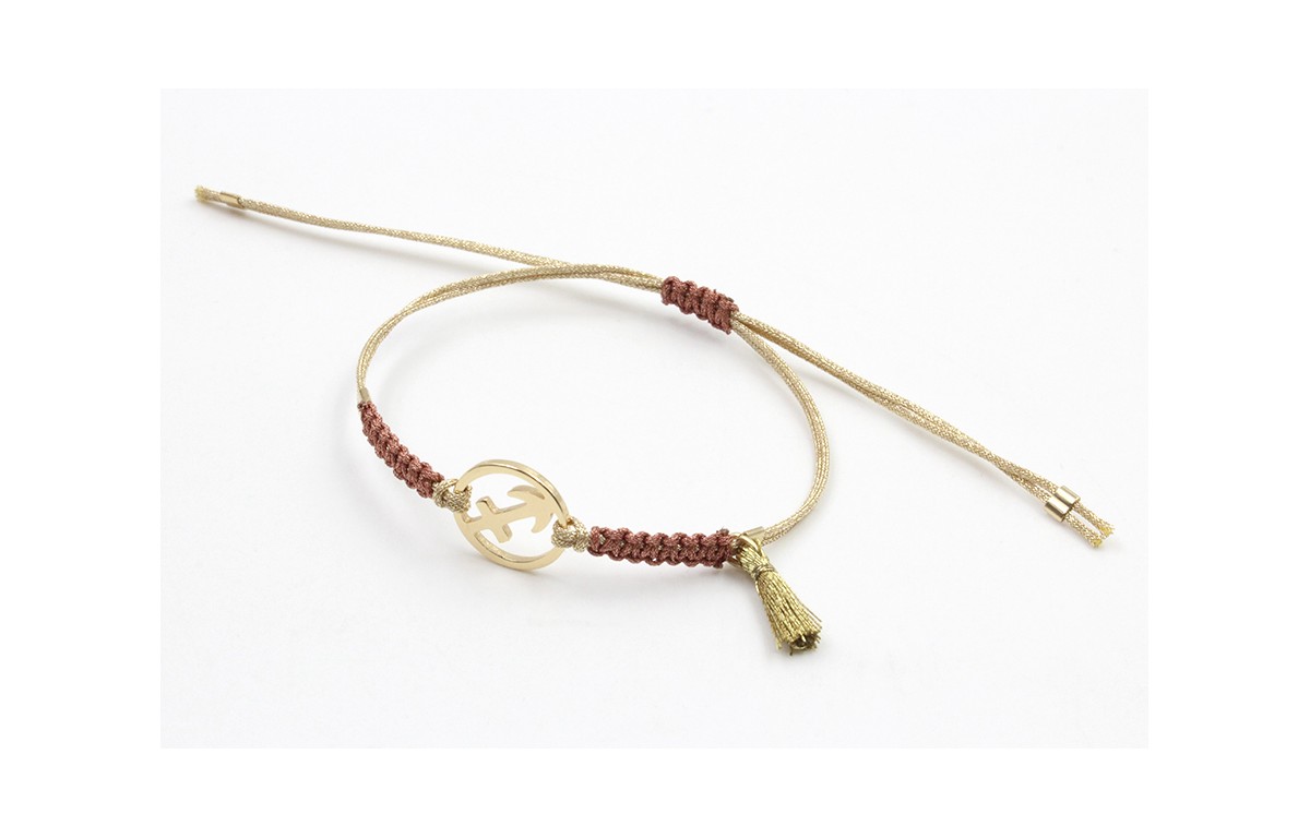 Pulsera hilo macrame oro palido con nudo oro rosa