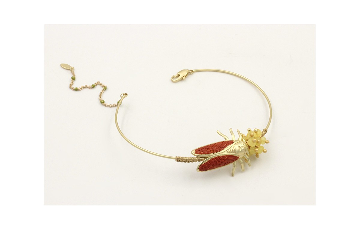 Pulsera rigida con cigarra oro mate y teja, forrad