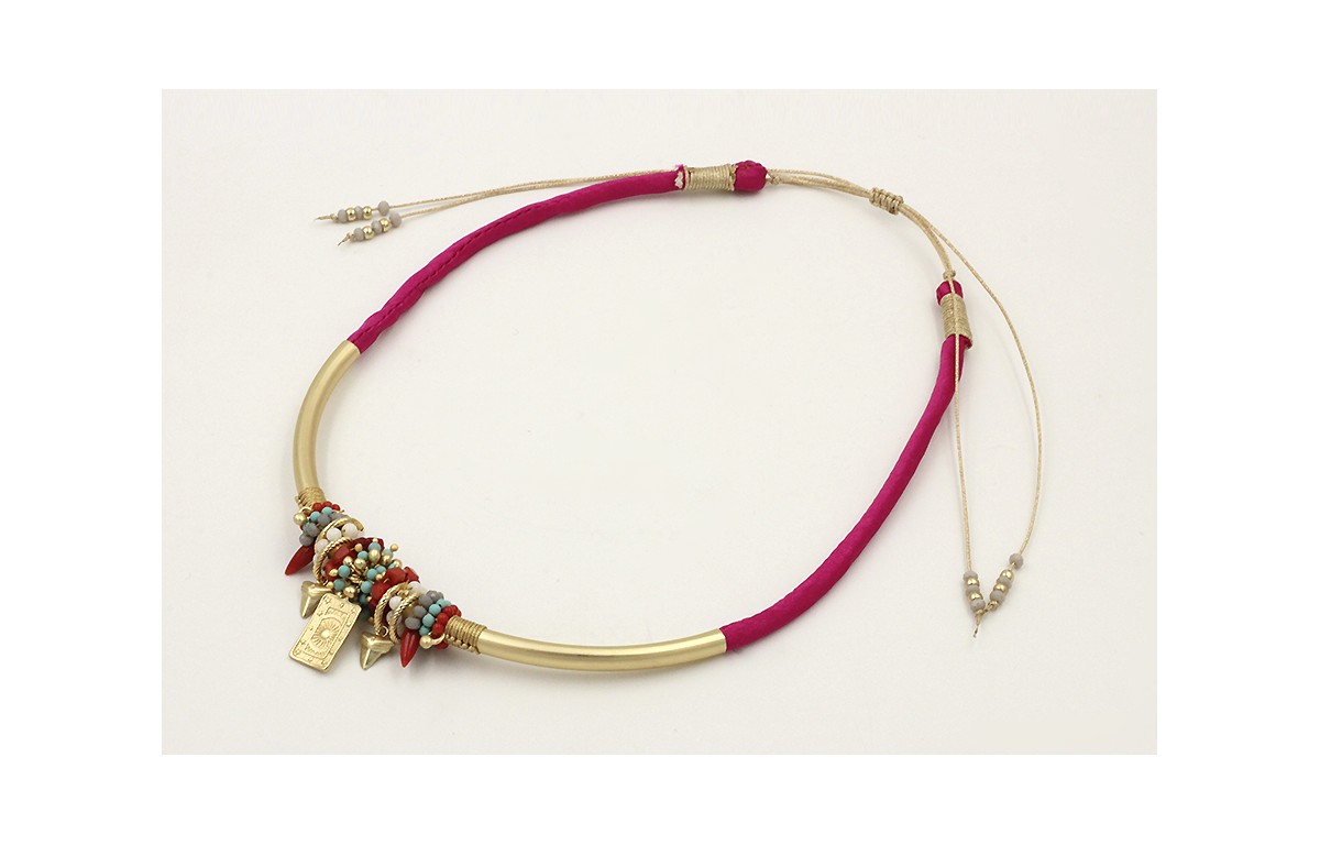 Collar seda rellena fucsia tubo curvado dorado mat