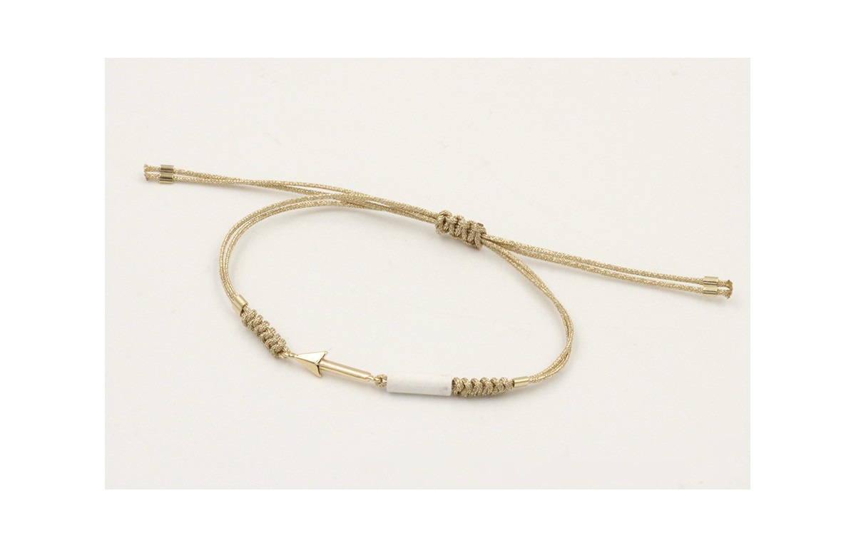 Pulsera hilo dorado palido con nudo serpiente y flecha dorado. Es regulable.
