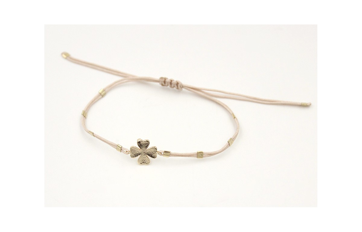 Pulsera hilo macramé rosa maquillaje con tubitos aplastados dorado. Es regulable