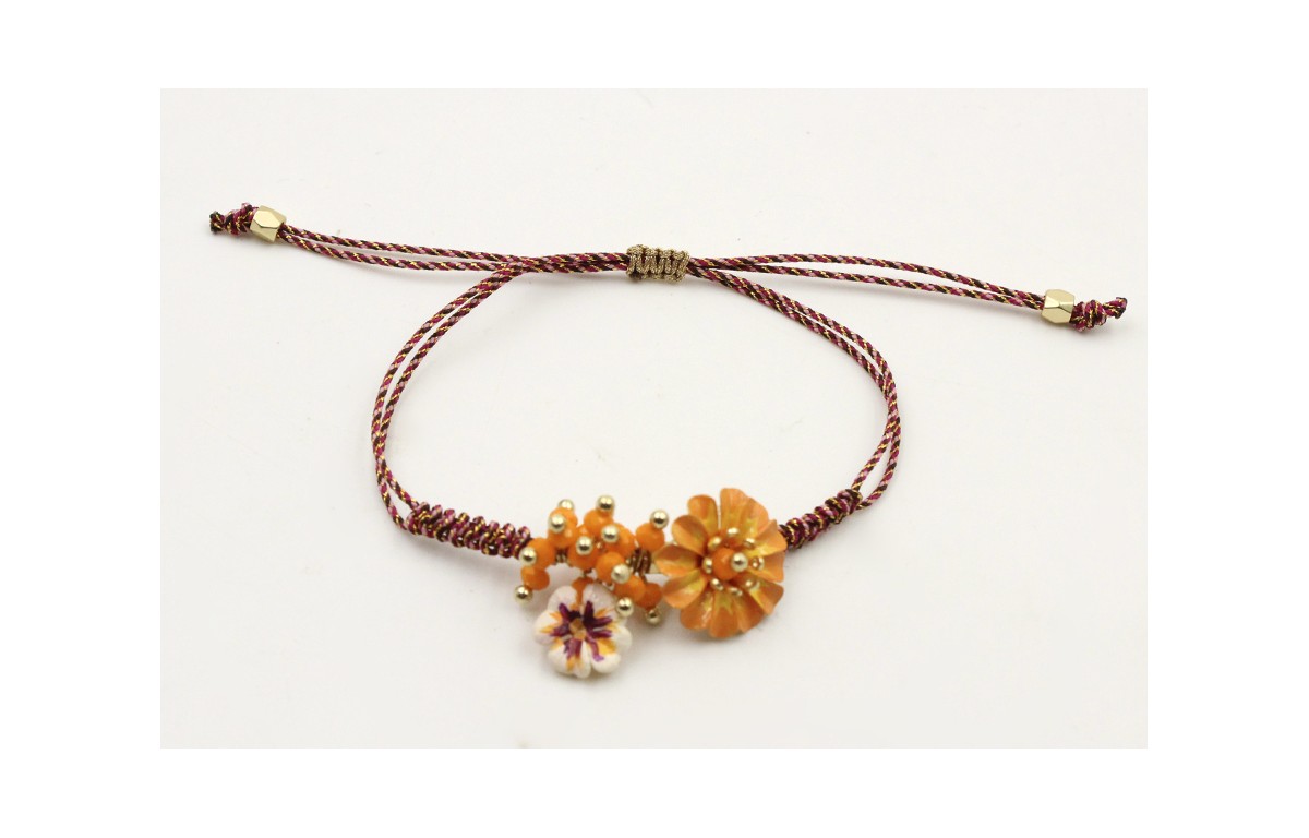 Pulser hilo micro driza color granate y oro con margarita amarilla,burruño facetadas naranjas,flor blanca,morada y naranja. Es regulable.